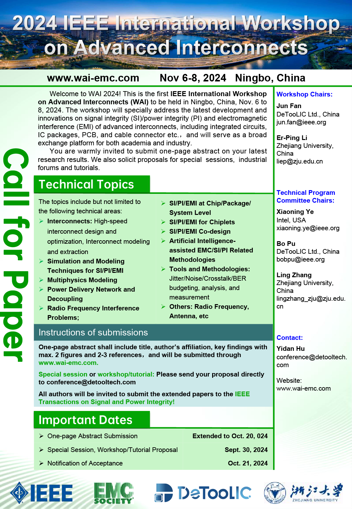 • Artificial intelligence-assisted EMC/SI/PI related methodologies;